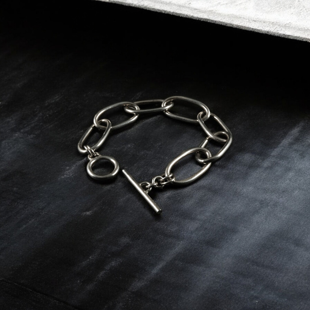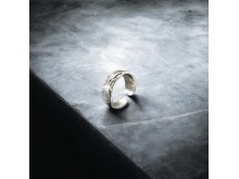 Son univers est marqué par l’élégance des lignes épurées, la justesse des proportions et une attention particulière portée aux détails. Chaque pièce est pensée comme un bijou du quotidien, à la fois discret et porteur d’une identité forte. L’argent massif est son matériau de prédilection, parfois accompagné de laiton doré à l’or fin ou d’autres éléments choisis avec soin.